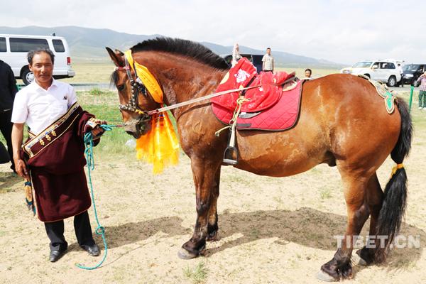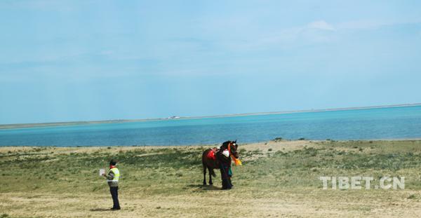 祭海儀式結(jié)束后,十一世班禪一行環(huán)湖游覽,在湖邊見到牧民斗改杰一家正牽著馬迎候。他們希望瞻禮到大師的尊容,為自己帶來福運。十一世班禪一時興起,想要騎騎他們的馬。斗改杰一家平時在青海湖二郎劍景區(qū)經(jīng)營旅游騎馬項目,沒想到今天這樣幸運,十一世班禪騎著他們的馬,在青海湖邊七月鮮花盛開的草原上,瀟灑地馳騁了幾個來回。他們激動地都說不出話了。