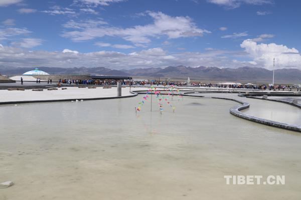 海西州蒙古族、藏族信眾在茶卡鹽湖旁恭候十一世班禪到來。