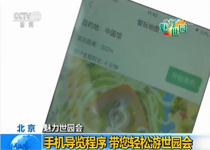 央視記者 張偉澤:這個智玩地圖,我們現(xiàn)在比如說去中國館,這里有個導航 現(xiàn)在顯示中國館離我有332米,4分鐘就能到達,我們現(xiàn)在開始導航,跟著導航去尋找中國館。