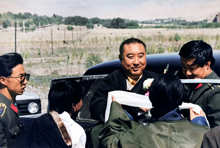 拉卜楞寺第六世嘉木樣o洛桑久美o圖丹卻吉尼瑪曾在悼念十世班禪時回憶,1951年,十世班禪從塔爾寺被迎請到拉卜楞寺,遵循拉卜楞寺認定活佛轉(zhuǎn)世靈童的傳統(tǒng)習(xí)慣,認定于1946年圓寂的第五世嘉木樣活佛的轉(zhuǎn)世靈童。當時認定書寫到:“經(jīng)班禪額爾德尼大師卜算決定,六世嘉木樣生在青海剛察貢瑪部落,父名道俄合,母名才讓卓瑪,佛為周本塔?!钡诹兰文緲踊罘鹫f,“這個被認定的靈童就是我,我的法名也是班禪大師賜予的?!?/p>