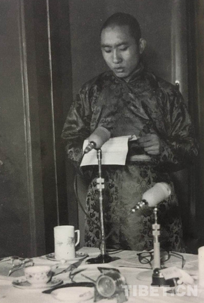 圖為1955年3月9日 十世班禪大師在國務(wù)院全體會議第七次會議上發(fā)言。翻拍自《班禪額爾德尼評傳》