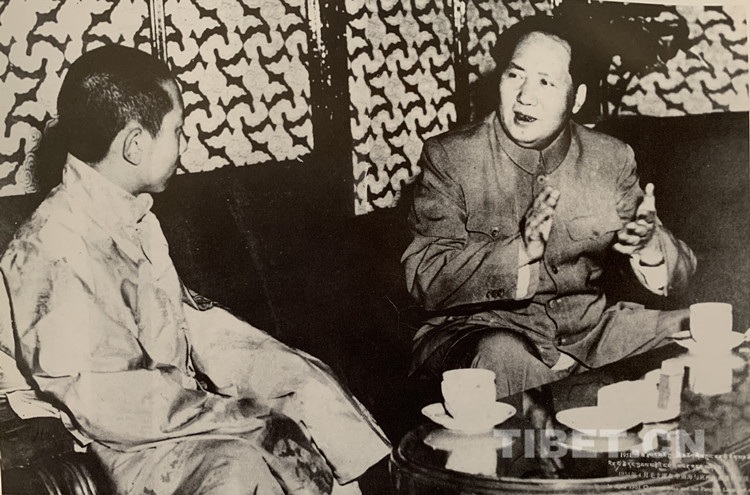 1951年4月,十世班禪親自率領班禪堪布會議廳主要官員到北京,受到毛澤東主席親切接見(選自大師珍藏的畫冊)。(翻拍自《十世班禪大師 劉隆攝影集》)
