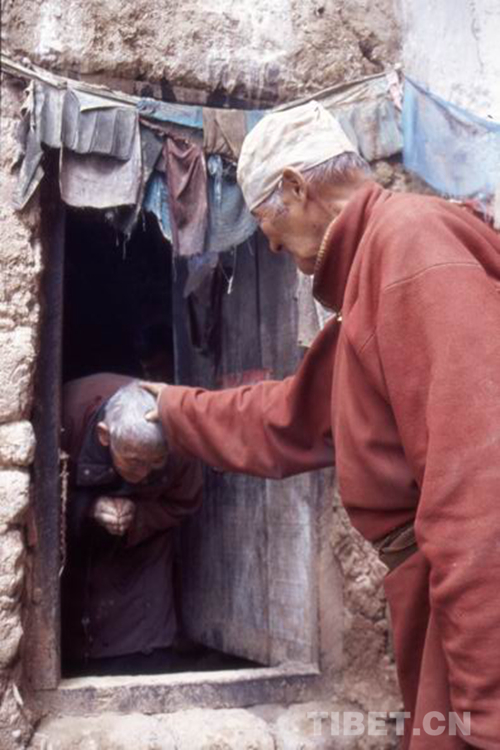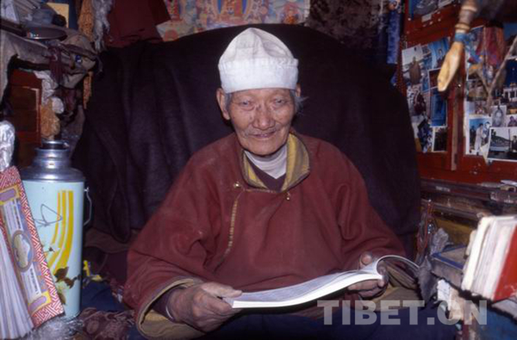 最后,我提出一個(gè)請(qǐng)求:希望能和老人家拍張合影。麥格隆說可以,但是不要他坐著、我蹲在他旁邊的合影,他要站起來和我一起到洞外去拍。我看著他腳上潔凈的布鞋和白襪,外面地上全是泥濘,于是拼命擺手:“這里就可以,出去會(huì)弄臟了您的鞋子!”但是,老人家堅(jiān)持站起來,換上一雙外出的厚底藏鞋,走出了修行洞。他心里對(duì)人的真誠(chéng)和尊重啊!從這個(gè)細(xì)節(jié)便能知曉。