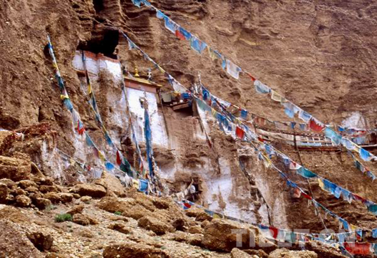 如此恢宏的歷史,全被掩埋在高原的沙土之下,現(xiàn)在,我的眼前一片荒蕪,只剩古如江寺的萬字符閃耀著淡金色的光芒,還有寺院外面山壁上圣人的修行洞外褪色的經(jīng)幡在風(fēng)中翻飛。