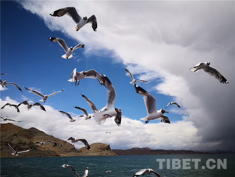 7月26日,十一世班禪觀覽班公湖,考察生態(tài)保護(hù)情況。置身于藍(lán)天綠水和湖光山色中,觀看鳥兒展翅飛翔和低空盤旋,聆聽美妙的鳥鳴聲,讓人感受到人與自然、與動物和諧相處的溫馨場景。