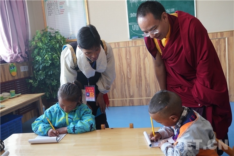 在寬敞明亮的教室里,十一世班禪看望了福利院的孩子們,看到兒童福利院的員工們耐心周到的工作作風(fēng),孩子們穿著整齊漂亮的民族服裝,生活在溫馨舒適的生活環(huán)境里,受到體貼入微的照顧和良好的教育,十一世班禪感到十分高興和感動。十一世班禪說:“學(xué)校環(huán)境很好,要好好學(xué)習(xí),將來才能更好地建設(shè)家鄉(xiāng)。”