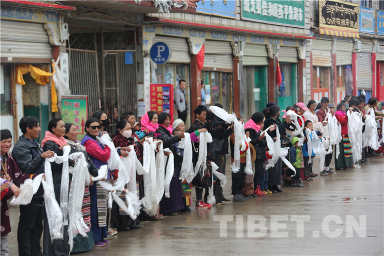 恰逢“羌塘恰青格薩爾賽馬藝術(shù)節(jié)”開幕,各地的僧俗信教群眾從方圓幾百公里的牧區(qū)趕來,他們身著盛裝,手捧哈達(dá),滿含期待地在那曲市道路兩邊恭迎全國政協(xié)常委、中國佛教協(xié)會(huì)副會(huì)長、中國佛教協(xié)會(huì)西藏分會(huì)會(huì)長班禪額爾德尼?確吉杰布重返家鄉(xiāng)那曲。