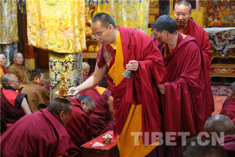 圖為十一世班禪為僧眾舉行長壽灌頂 攝影:王淑