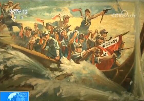 央視記者 閆乃之:這里就是紅軍強渡大渡河時的渡口。當(dāng)年水面比現(xiàn)在更加寬闊、河水更加湍急。所以紅軍的船只從這里出發(fā)之后,在水流的沖擊之下只能向斜下方漂進。但是在紅軍登陸的地點,您看畫面中有幾棟房子的地方,就是國民黨軍隊部署火力的地方。紅軍一邊強渡天險,另一面要與敵軍作戰(zhàn)。