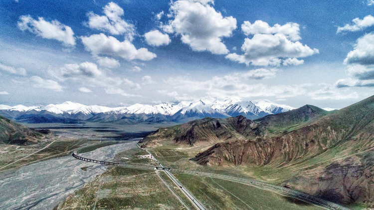 青藏公路、青藏鐵路遙望著昆侖山的雪。