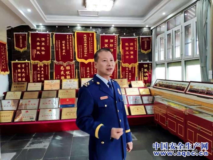 隊長蔡瑞在榮譽室介紹“沒有戰(zhàn)功就是我們最大的戰(zhàn)功”。