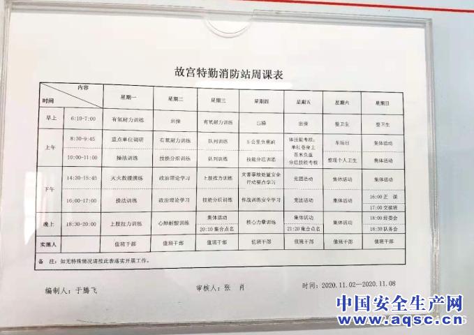 這是一張貼在宿舍墻上的表,早六晚八的作息,說明了故宮50年無火災(zāi)的原因。