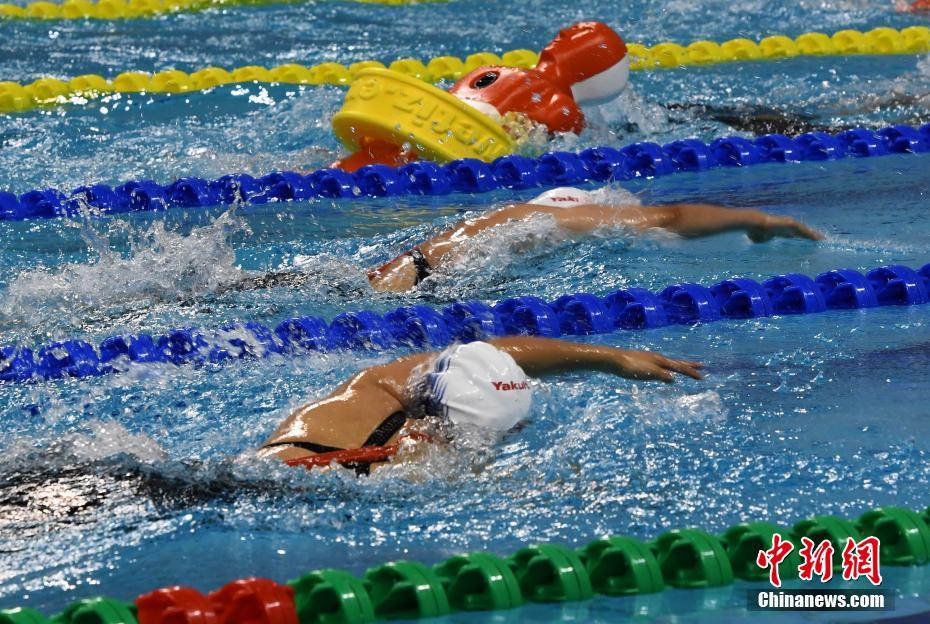 10月22日晚,在湖北省武漢市進(jìn)行的第七屆世界軍人運動會男子4x50米混合救生接力決賽中,中國隊以1分27秒37的成績獲得冠軍。圖為比賽現(xiàn)場。中新社記者 周毅 攝