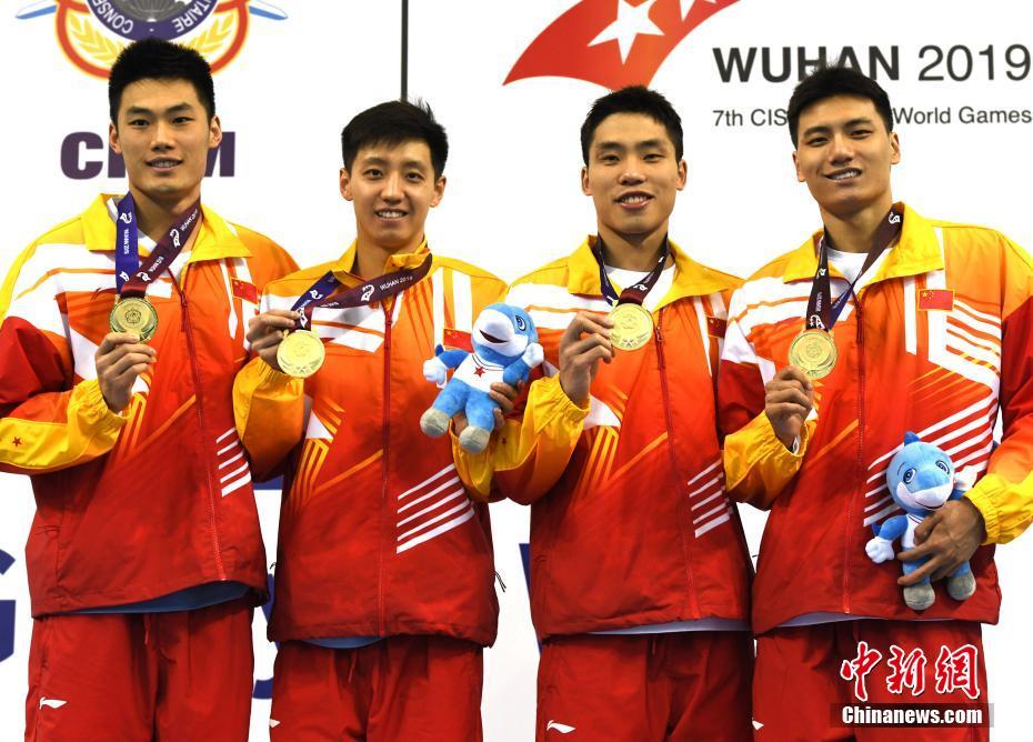 武漢軍運會 中國隊獲男子4x50米混合救生接力賽冠軍