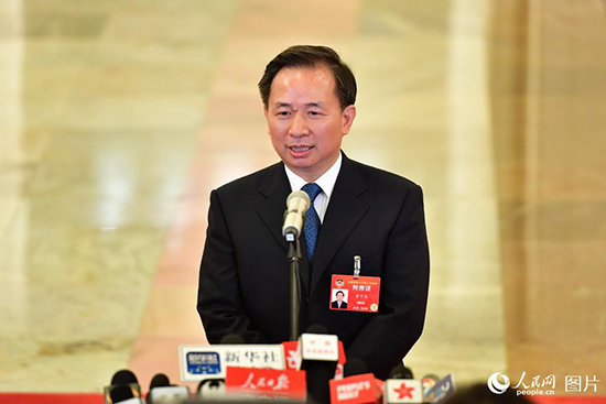 生態(tài)環(huán)境部部長李干杰接受記者采訪。人民網(wǎng)記者 于凱 攝