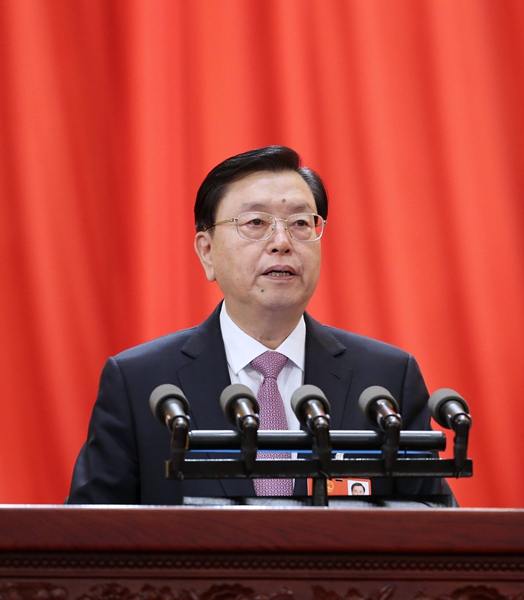 3月11日,十二屆全國(guó)人大常委會(huì)委員長(zhǎng)張德江向十三屆全國(guó)人大一次會(huì)議作《全國(guó)人民代表大會(huì)常務(wù)委員會(huì)工作報(bào)告》。 新華社記者 姚大偉 攝