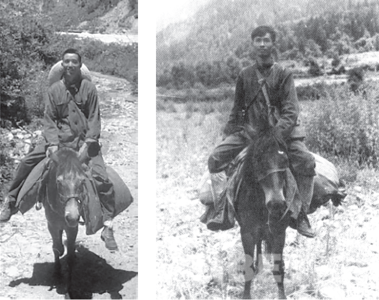 兩位地理學家1973年藏東南地區(qū)科考中的馬背形象。左圖為李炳元,右圖為鄭度
