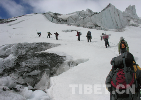 藏東南密集的海洋性冰川成為青藏高原研究所重點監(jiān)測地區(qū)。圖為楊威博士帶隊前往帕隆4號冰川