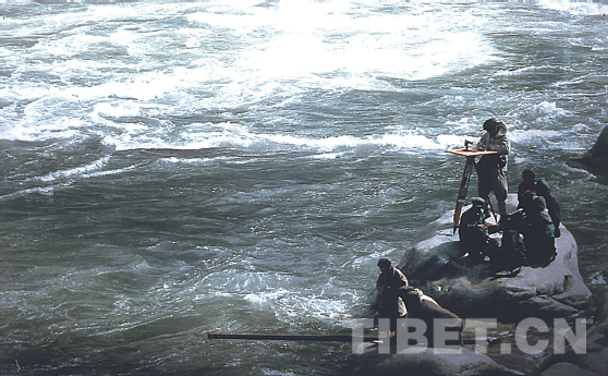 在雅魯藏布江面測(cè)量流速 郭長福/攝影