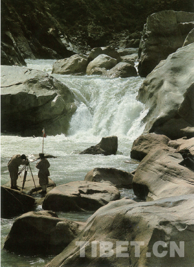 雅江考察任務(wù),除對水文特征——河道、流量、泥沙、水化學(xué)、洪枯水位等等進(jìn)行調(diào)查外,還負(fù)有水能資源及其合理開發(fā)利用、開發(fā)方式和工程條件的評價(jià)職責(zé)。關(guān)志華從地形圖和航拍照片上、從當(dāng)?shù)卦L問中得知,桑日—加查峽谷中有兩大瀑布,決定前往探察。為確保安全,山南地區(qū)及駐軍派出藏族向?qū)Ш陀?xùn)練有素的偵察兵隨行。