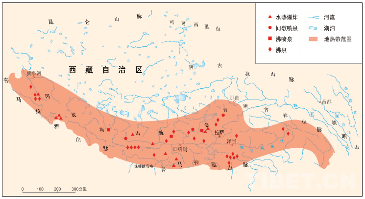 地熱是來自地球內部的一種天然熱能,與太陽能、風能等新能源一樣,是清潔能源、可再生能源。地球內部熱量通過地下水和熔融巖近距離涌至地殼,熱力得以傳導地面。地熱異常區(qū)或稱地熱帶,主要分布在板塊生長、開裂的大洋擴張脊和板塊碰撞及其消減、衰亡帶部位。據現有資料,中國地熱資源量占全球地熱資源總量的1/6;西藏是中國地熱活動最強烈地區(qū),地熱儲藏量居全國首位,700多處地熱顯示區(qū)中,近半數具有開發(fā)利用價值。其中高溫地熱資源,在全國總量中占比80%,羊八井地熱田是中國最大的高溫濕蒸汽熱田,率先進行了地熱發(fā)電的可貴嘗試。