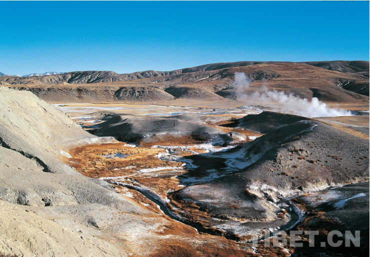 羊八井熱水湖。這個熱水湖應當源于歷史上的一次大規(guī)模水熱爆炸,再由地下熱水補充而成。羊八井熱田開發(fā)后,地下熱水的水位下降,壓力減小,致使熱水湖漸趨干涸。