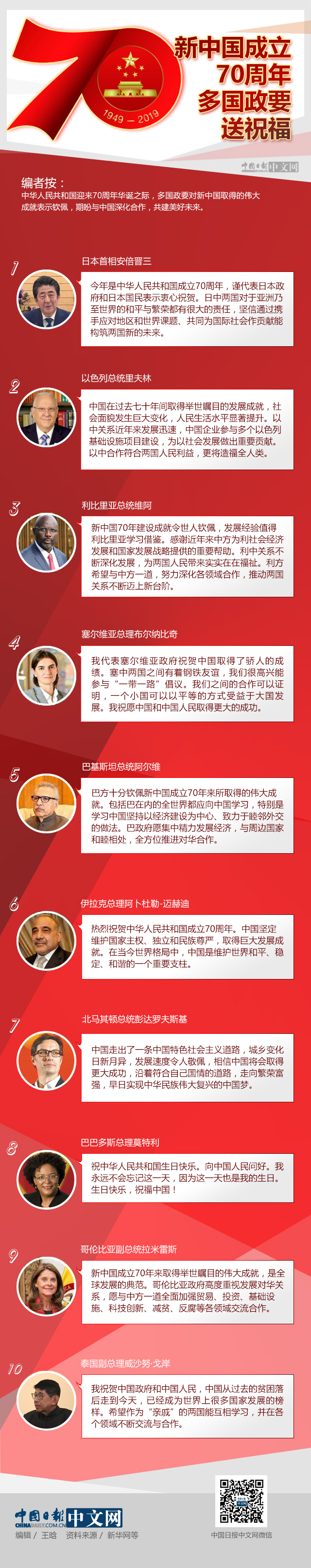 圖解 | 新中國成立70周年 多國政要送祝福