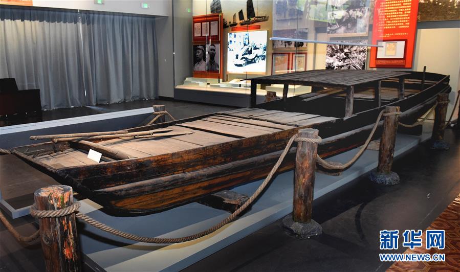 這是香山革命紀(jì)念館中,《為新中國奠基——中共中央在香山》主題展覽展出的人民解放軍渡江戰(zhàn)役使用的同型木船(9月7日攝)。新華社發(fā)(任超 攝)
