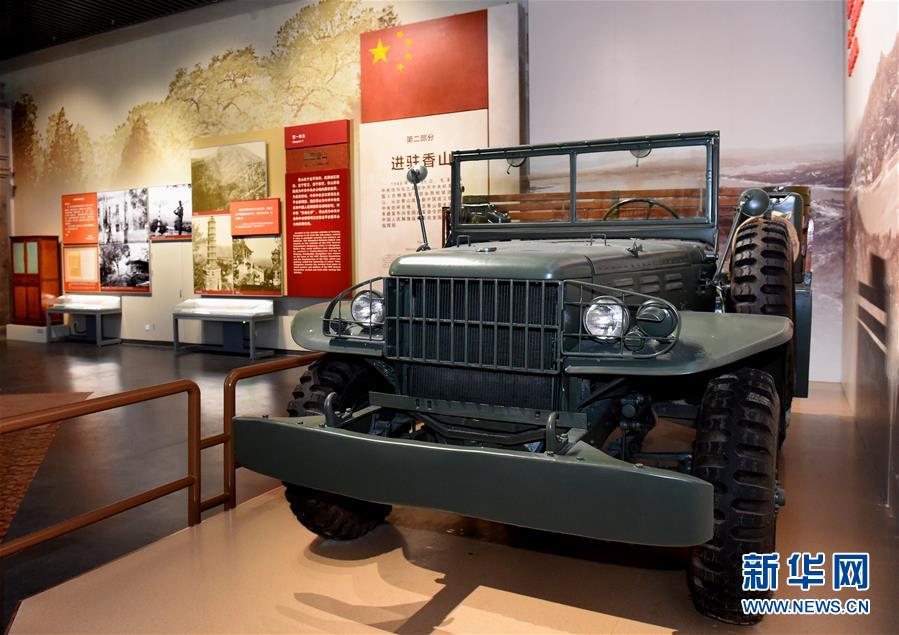 這是香山革命紀(jì)念館中,《為新中國奠基——中共中央在香山》主題展覽展出的中共中央遷駐香山時使用的同型吉普車(9月7日攝)。新華社發(fā)(任超 攝)