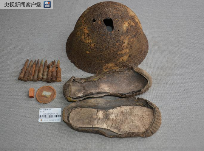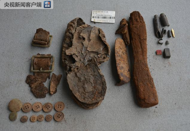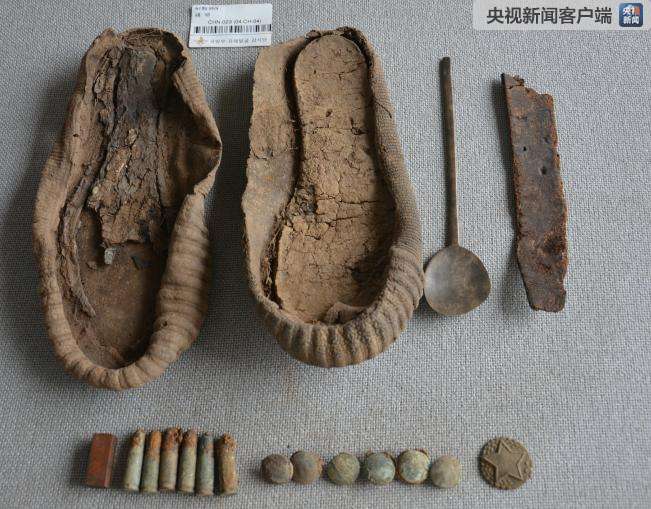 其他遺物:殘缺皮帶1段、勺子1個、紐扣6個、帽徽(未確定)1個、子彈6個、鞋底兩只