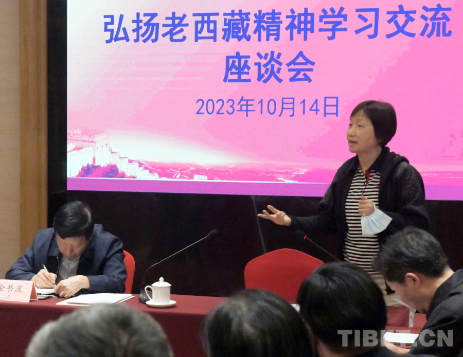 圖為北京建藏援藏工作者協(xié)會(huì)副會(huì)長(zhǎng)張小康在協(xié)會(huì)召開(kāi)的“弘揚(yáng)老西藏精神學(xué)習(xí)交流座談會(huì)”上介紹“老西藏精神”(唐召明2023年10月14日攝)