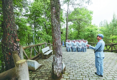 江西省瑞金市葉坪鄉(xiāng)華屋村是遠近聞名的“紅軍村”。圖為游客正在參觀華屋村“信念樹”。