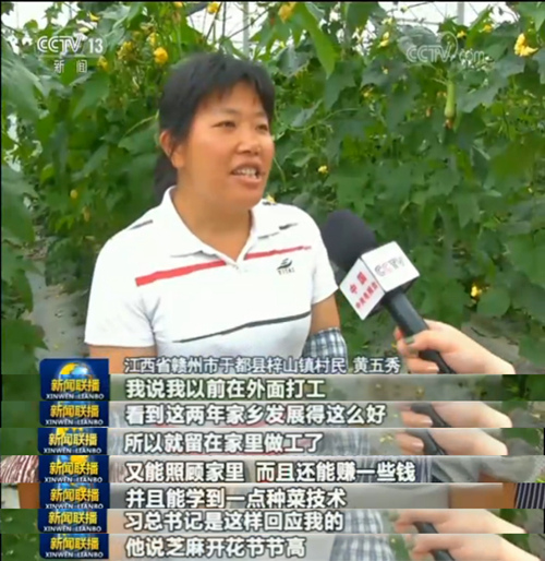 兩年前,梓山鎮(zhèn)的六個(gè)村子合力建起了這個(gè)蔬菜產(chǎn)業(yè)園?,F(xiàn)在,產(chǎn)業(yè)園每年可提供時(shí)鮮蔬菜6萬噸,不少村民也回鄉(xiāng)打工,戶均年增收近萬元。村民黃五秀把這個(gè)好消息告訴給了總書記。