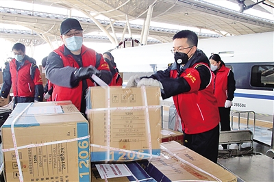 在突擊隊(duì)為生命接力的日子里,曾有兩名醫(yī)療隊(duì)隊(duì)員不小心將自己的隨身背包落在了車上。列車已經(jīng)開走了,突擊隊(duì)隊(duì)員聞?dòng)嶑R上聯(lián)系列車長(zhǎng),待東西找到后,再通過(guò)第二天的過(guò)路火車帶回武漢,并轉(zhuǎn)送到醫(yī)療人員的手里。賈青青說(shuō):“我們的目標(biāo)是一致的,那就是為武漢加速。他們?yōu)榛颊叻?wù),我們就為他們服務(wù)。”