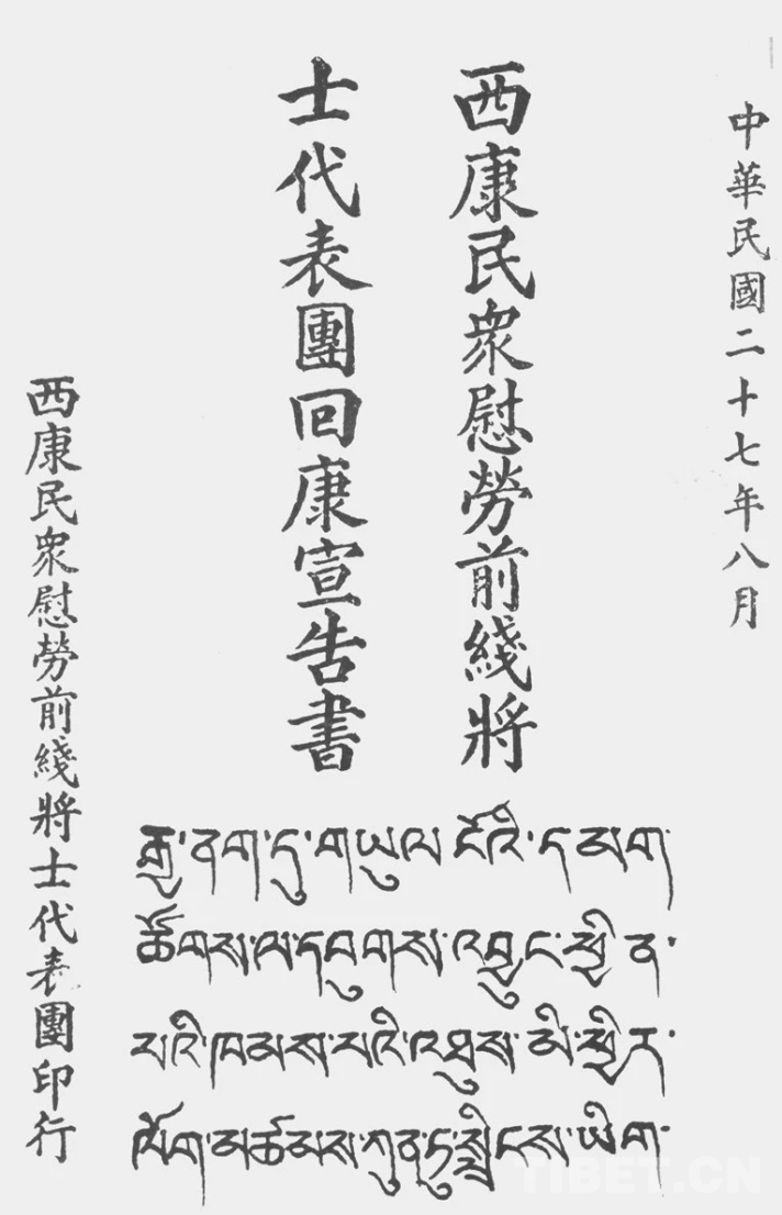 圖為《西康民眾慰勞前線將士代表團(tuán)敬告將士書》封面 圖片由喜饒尼瑪提供