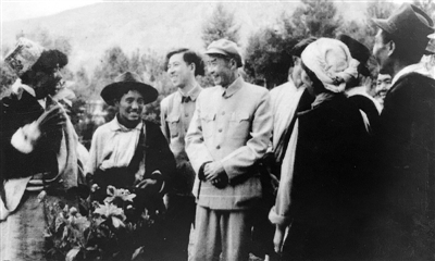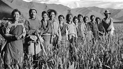 中央人民政府駐西藏代表,中共西藏工委第一書記張經(jīng)武同志在拉薩團(tuán)結(jié)農(nóng)業(yè)生產(chǎn)互助組視察工作。記者 鄭少杰 陳振東 巴桑 整理