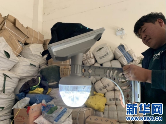 駐村工作隊及巴扎鄉(xiāng)工作人員積極調(diào)試設(shè)備,為后期路燈安裝做準備。新華網(wǎng)發(fā) 張峽攝