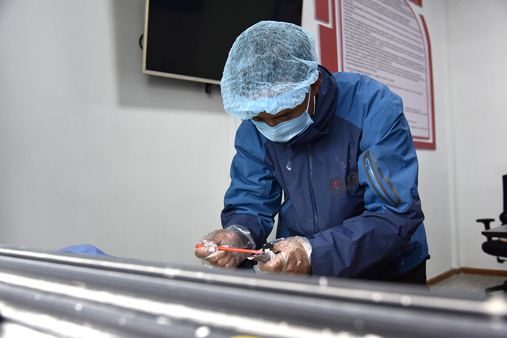 圖為那曲市聶榮縣色慶鄉(xiāng)雜瑪多種經(jīng)營合作聯(lián)合社工人正在檢測牛奶質(zhì)量 攝影:王媛媛