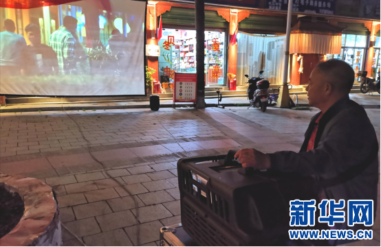 安民宏在放映電影(9月13日攝)。新華網(wǎng) 張宸攝