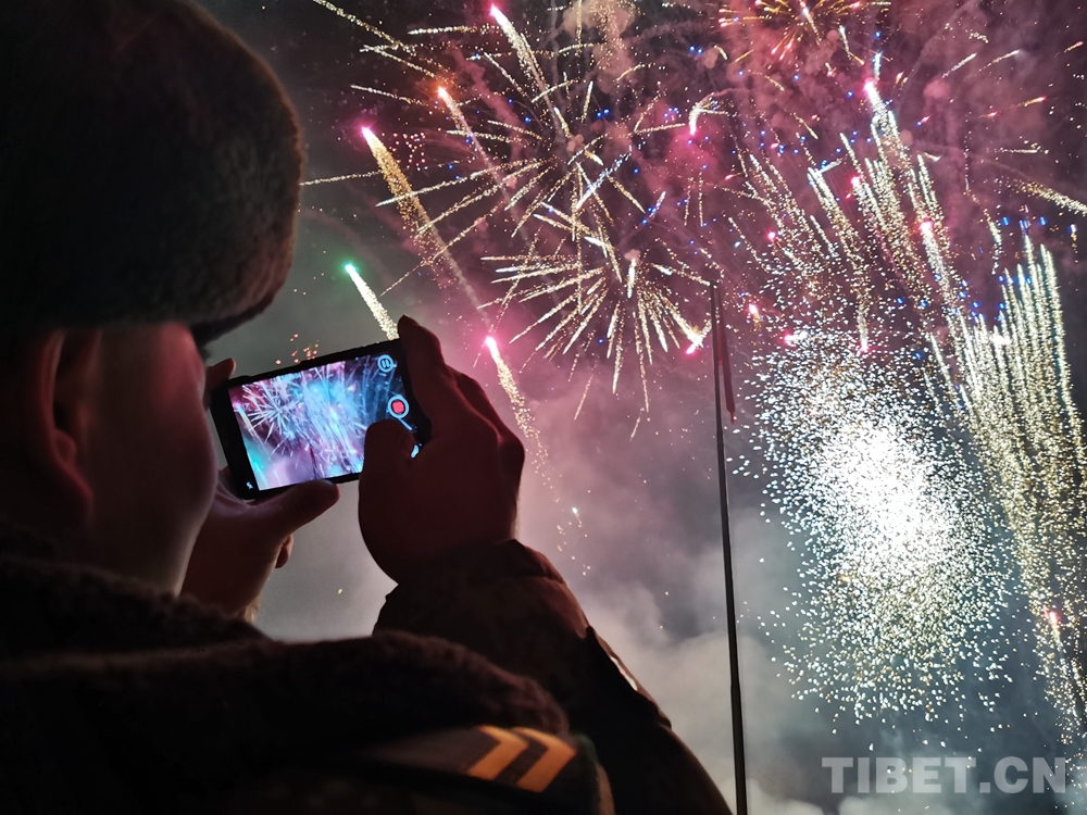 圖為駐藏部隊(duì)官兵錄一段煙花秀,分享給父母,說(shuō)一聲:“爸,媽,我想你們了!” 攝影:牛玉壯