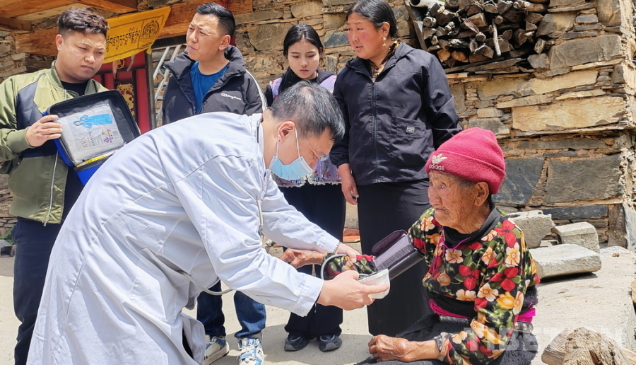 圖為 “同心·共鑄中國心”2025阿壩行大型健康公益綜合服務(wù)活動義診醫(yī)療專家在四川省阿壩州馬爾康市草登鄉(xiāng)入戶巡診,為行動不便的老人送醫(yī)送藥 攝影:喇應(yīng)強