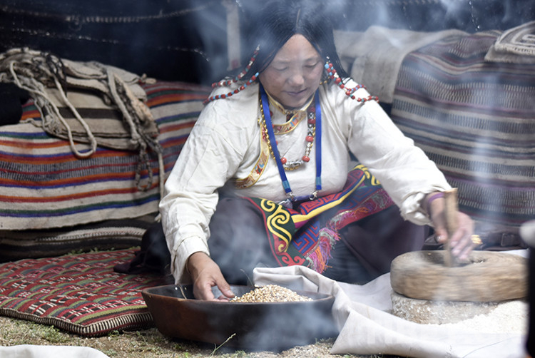 中國西藏網(wǎng)訊 手工碾磨青稞、傳統(tǒng)的酥油桶、藏式火爐……今年7月,西藏自治區(qū)那曲市班戈縣賽馬藝術(shù)節(jié)期間,人們在觀賞賽馬比賽的同時(shí),也前往傳統(tǒng)游牧文化體驗(yàn)區(qū),了解藏北草原上的優(yōu)秀傳統(tǒng)文化。