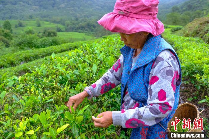 圖為正在采茶的茶農(nóng)(5月18日攝)。新華網(wǎng) 雪珍 攝