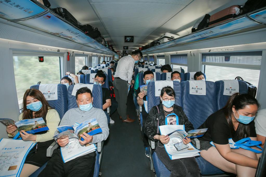 就在“藏源山南”高鐵冠名列車發(fā)車之際,山南旅發(fā)局及華鐵傳媒工作人員一同登上冠名列車,在長(zhǎng)沙到廣州路段全程與近300名乘客展開(kāi)趣味互動(dòng),發(fā)放山南旅游宣傳資料和山南特色紀(jì)念品共600余份。一路上乘客積極響應(yīng),紛紛向工作人員咨詢赴山南旅游事宜并爭(zhēng)相掃碼關(guān)注山南旅游微信號(hào)公眾號(hào),許多乘客當(dāng)即表示,“藏美之行”將從“藏源山南”開(kāi)啟。