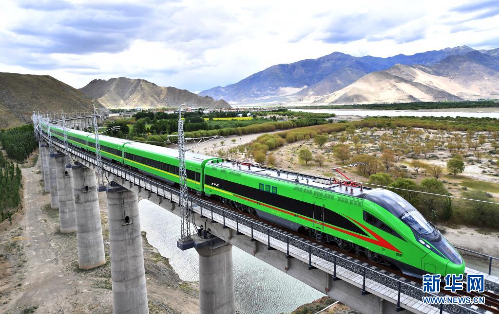 6月25日,全長435公里、設(shè)計(jì)時(shí)速160公里的拉林鐵路建成通車,西藏首條電氣化鐵路建成,同時(shí)復(fù)興號(hào)實(shí)現(xiàn)對(duì)31個(gè)省區(qū)市全覆蓋。這是試運(yùn)行的復(fù)興號(hào)列車行駛在西藏山南市境內(nèi)(6月16日攝)。新華社記者 覺果 攝