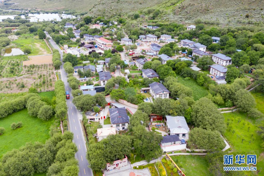 俯瞰林芝市巴宜區(qū)林芝鎮(zhèn)嘎拉村(無人機(jī)照片,7月21日攝)。新華社記者 普布扎西 攝