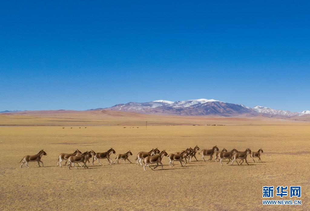 這是在西藏羌塘國家級(jí)自然保護(hù)區(qū)拍攝的藏野驢(無人機(jī)照片,2019年12月23日攝)。新華社記者 孫非 攝