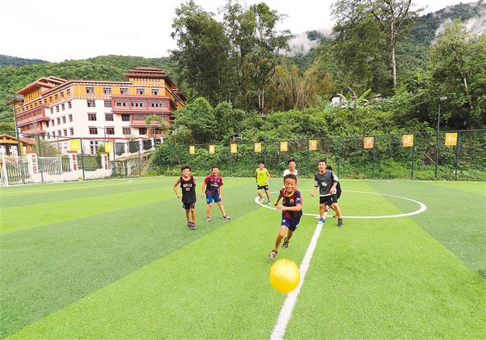圖為西藏自治區(qū)林芝市墨脫縣墨脫鎮(zhèn)墨脫村的孩子們在家附近的足球場上快樂地踢足球 攝影:西藏日報記者格桑吉美
