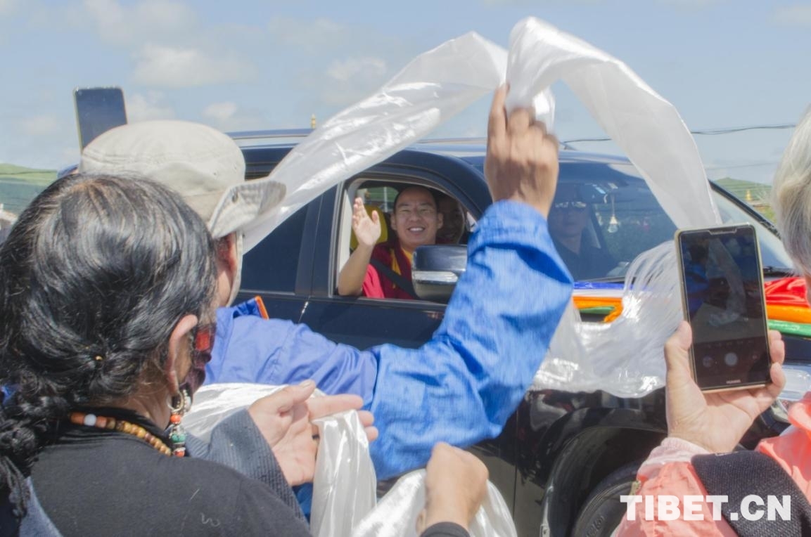 圖為調研路上,班禪囑咐放慢車速,向群眾揮手致意 攝影:歐帆