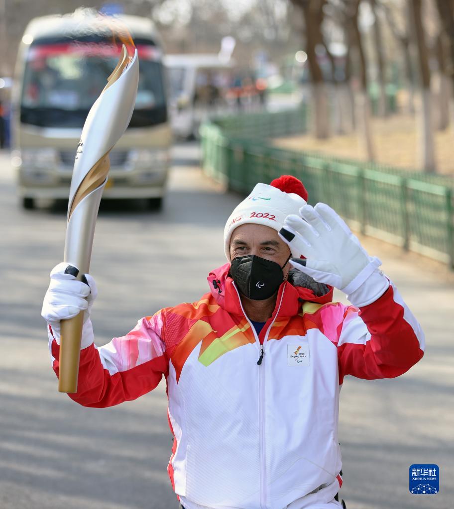 3月3日,火炬手國際殘奧委會副主席杜安·卡勒在傳遞火炬。新華社記者 杜瀟逸 攝